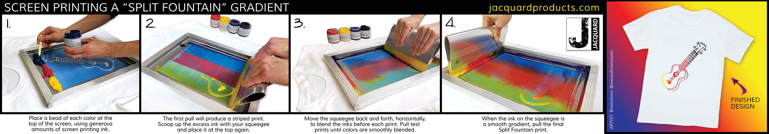 Jacquard Products has two screen printing kits featuring Jacquard Screen Inks that will appeal to beginners and professional screen printers alike. The Semi-Transparent Colors Screen Printing Kit is designed for printing on light backgrounds. The Opaque Colors Screen Printing Kit is designed for printing on dark backgrounds.